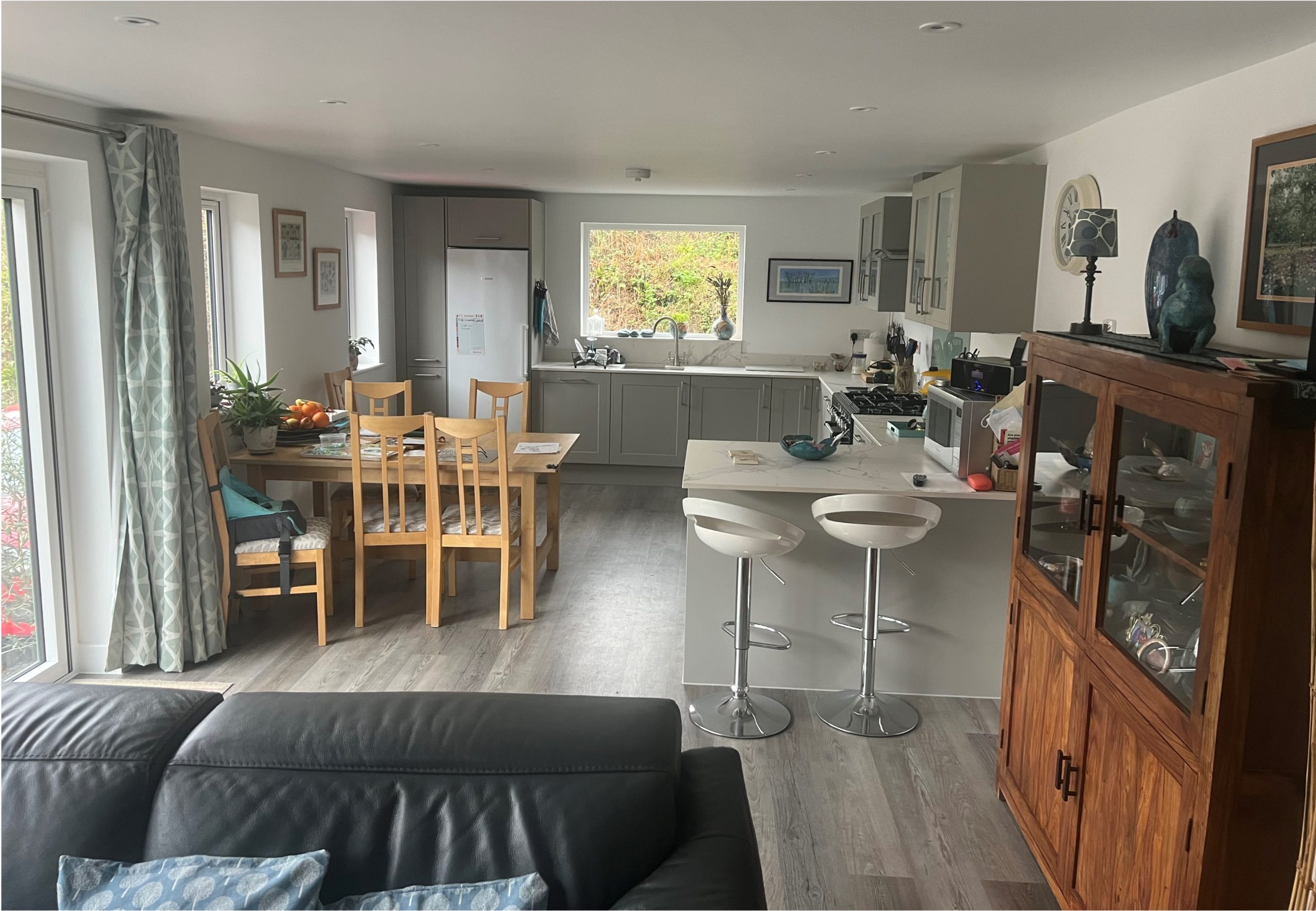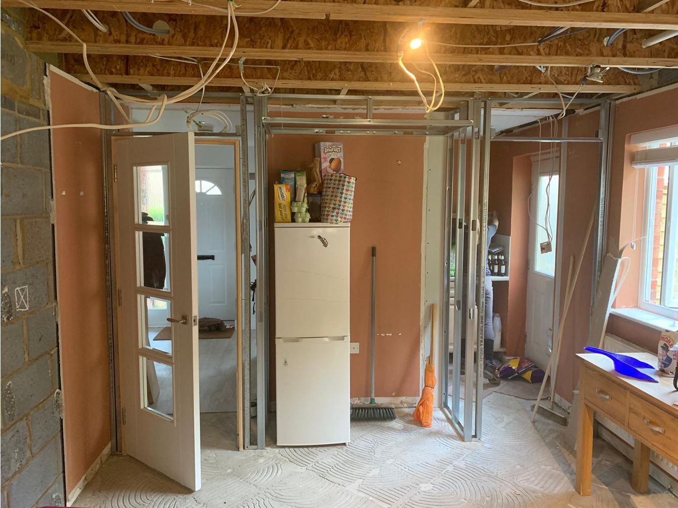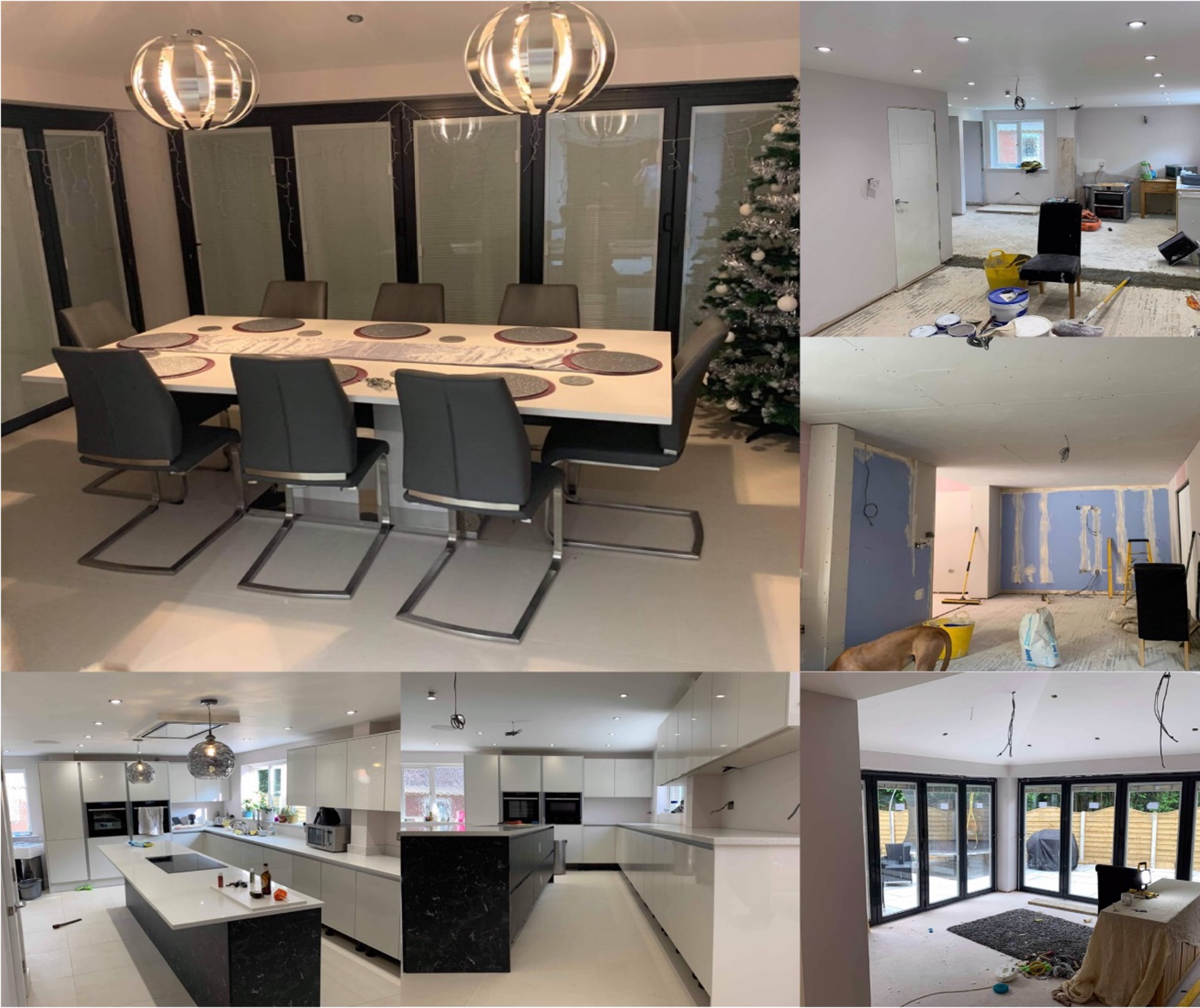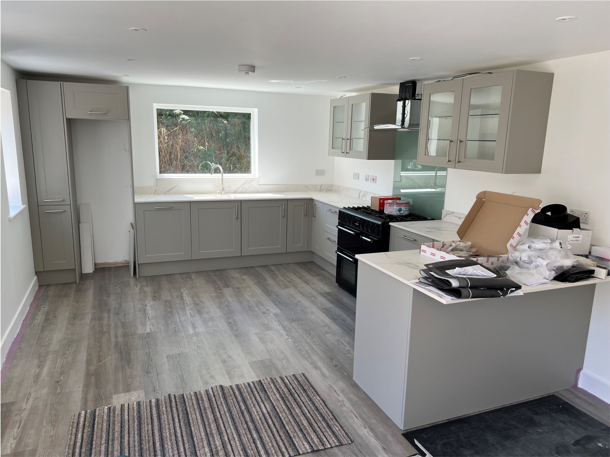 New two storey build from start to finish, comprising of three bedrooms, utility, ensuite, downstairs shower room and large kitchen diner. Underfloor heating throughout the downstairs, with XL porcelain floor tiles throughout. This project was fully managed by JP Complete Construction, giving the customer peace of mind that they would only deal with one point of contact. We liaised and arranged all needed contractors for completion of this project. The client was provided with a program of works so they could see and understand the order of works, this also helped with them controlling their mortgage draw downs.