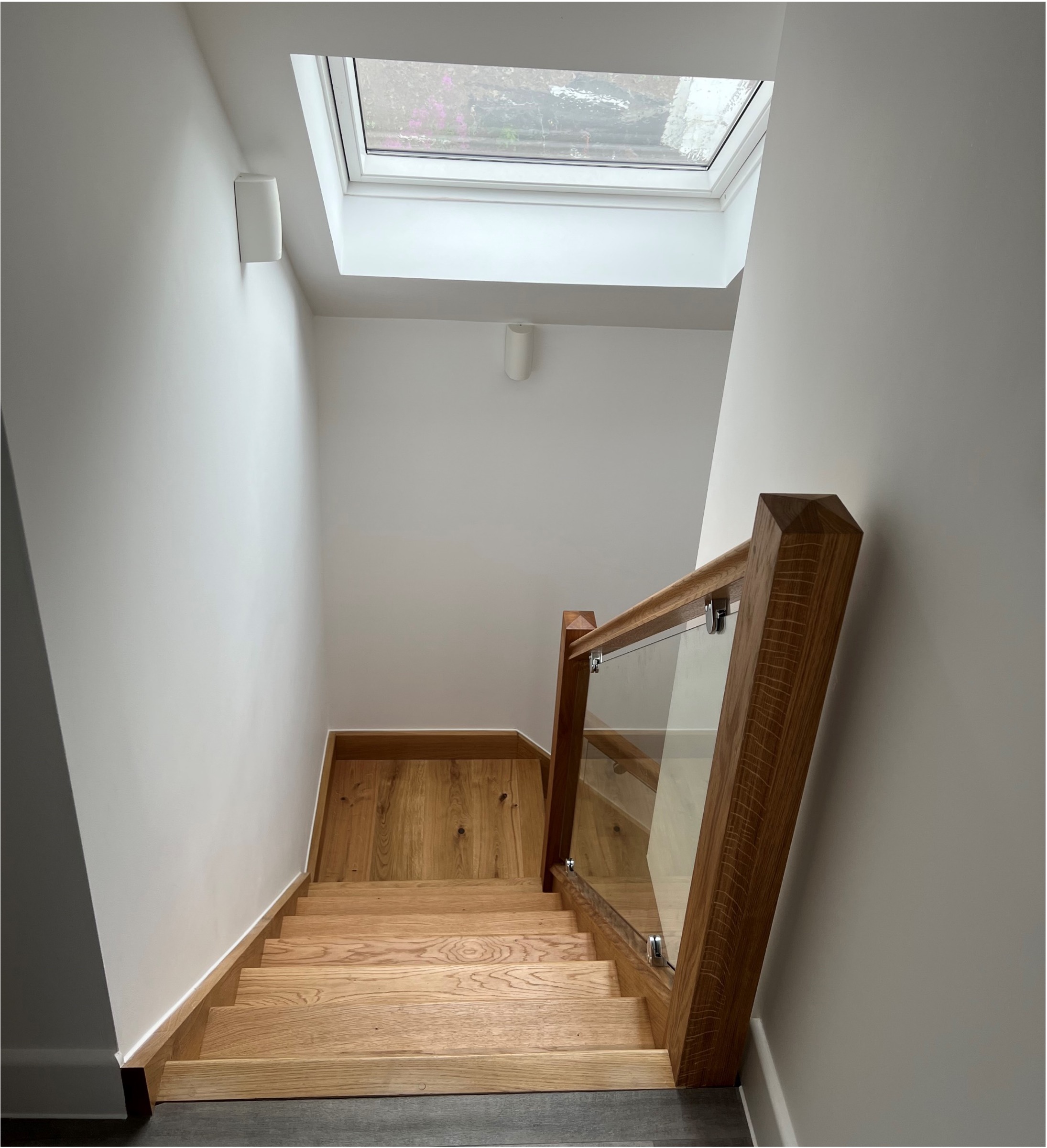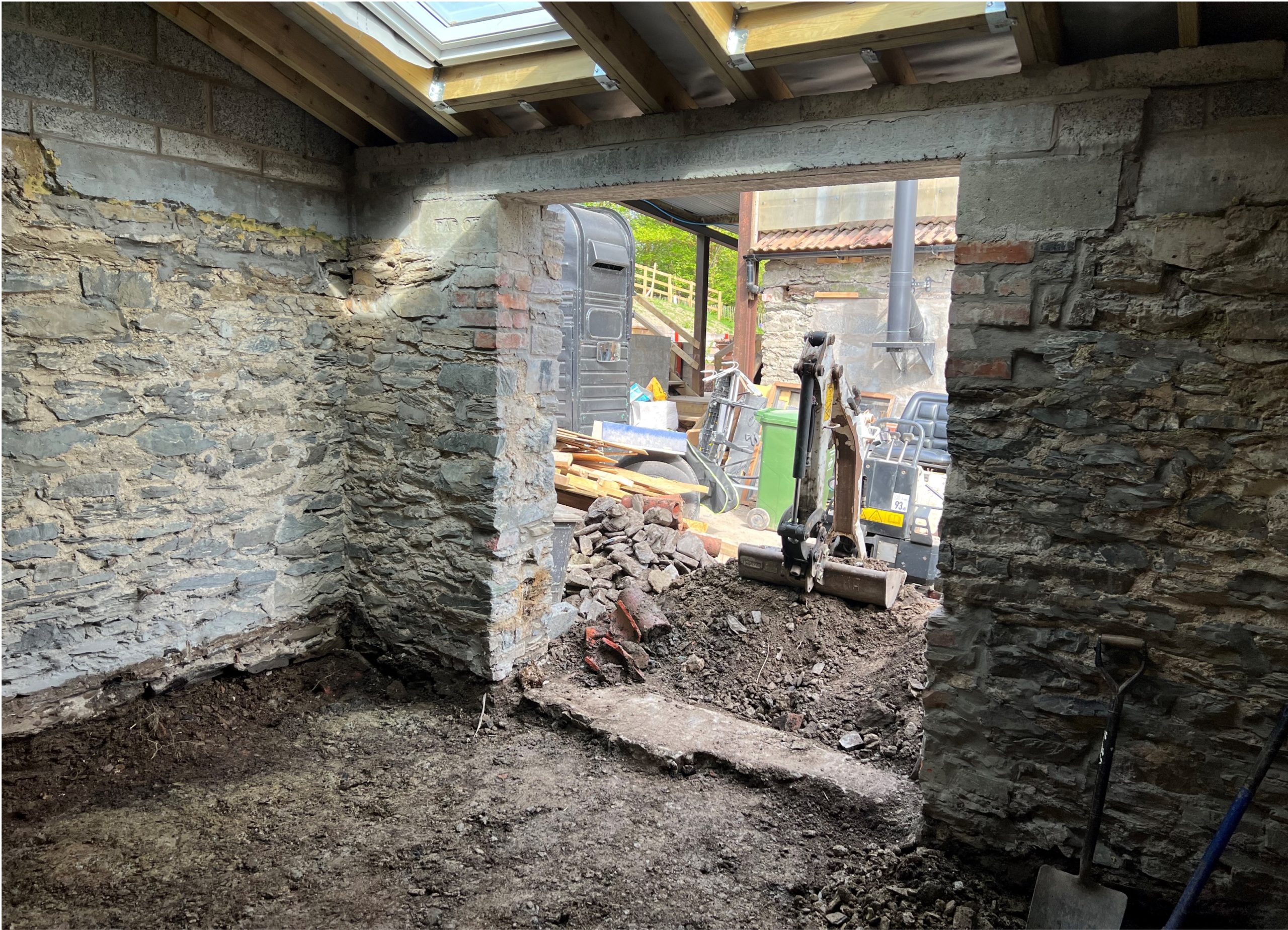 An old cattle barn converted into a two bedroom house with open plan kitchen living diner, large bathroom & ensuite, large boot room and utility. Installation of new ridge steels and crank steels to stabilize the existing barn. Tanking installed throughout downstairs due to the barn being built into the ground. A bespoke oak and glass staircase was made and installed. Underfloor heating both upstairs and down stairs with the use of air source heating. This property benefited from a new borehole and water treatment plant to provide water source to the house.