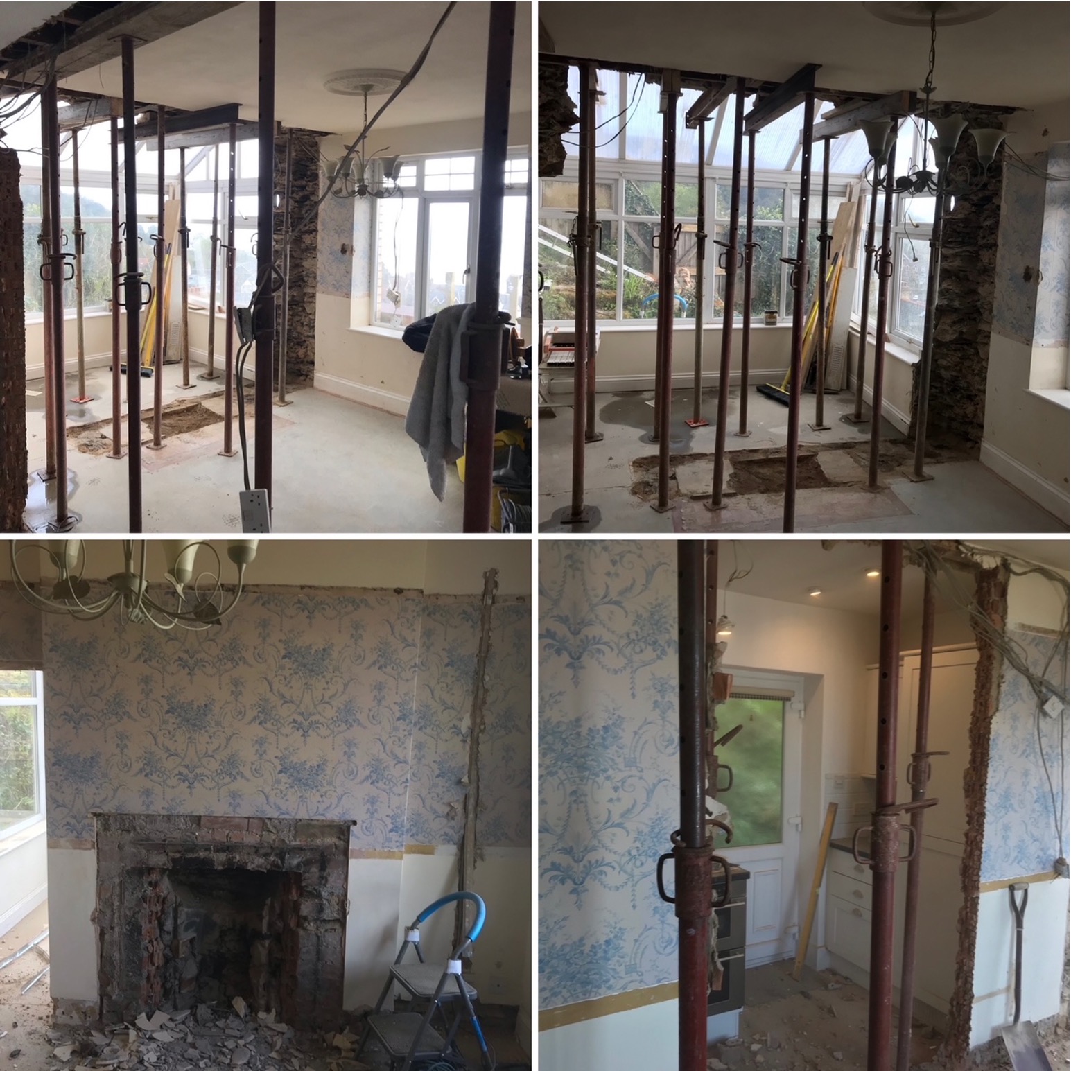 Renovation of a four bedroom property situated in an elevated position. Due to the clients living up country all communication was via email, video call and photos. Works carried out consisted of internal knockdowns, installation of steel portal frames to capture the coastal views and wrap around decking with glass balustrade. A new kitchen and bathroom were installed along with a new heating system, plumbing and electrics.